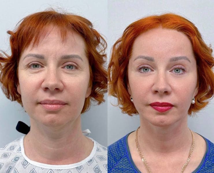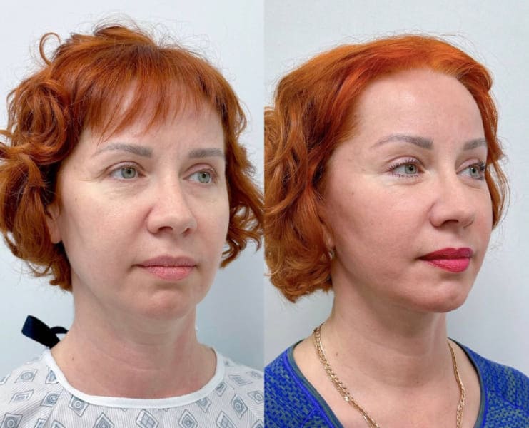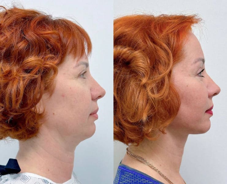 Особенно отметьте, как поменялся шейно-подбородочный угол.