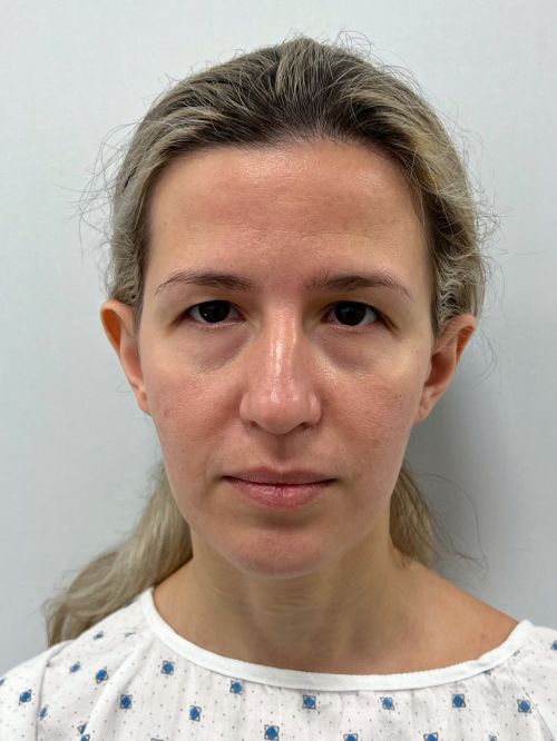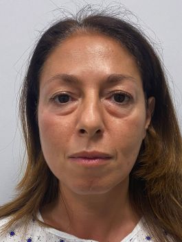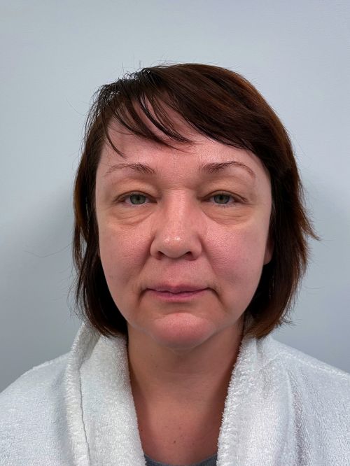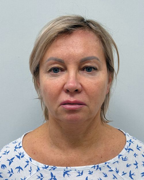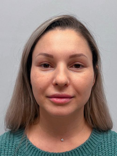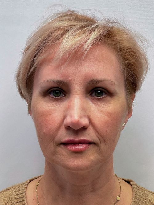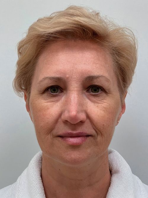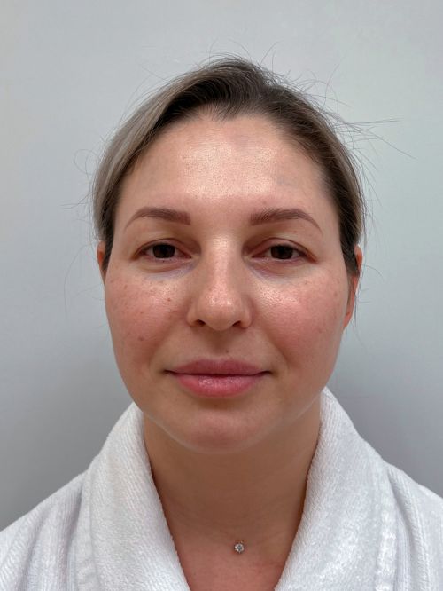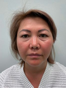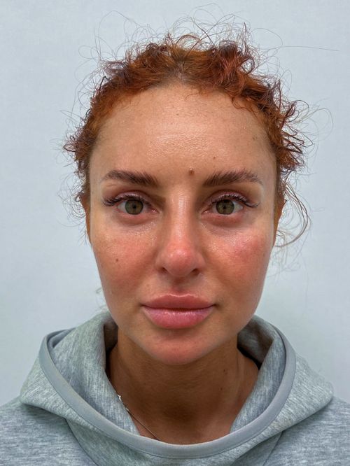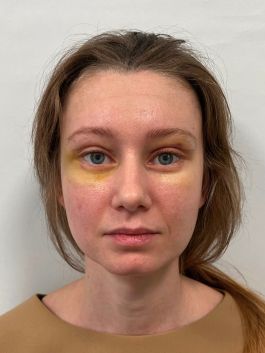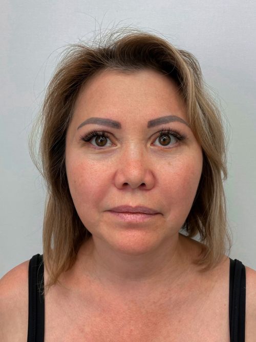 — коррекция нижних век, щечно-скуловой области, носогубного треугольника, поднятие опущенных уголков рта, устранение небольшого провисания овала лица.